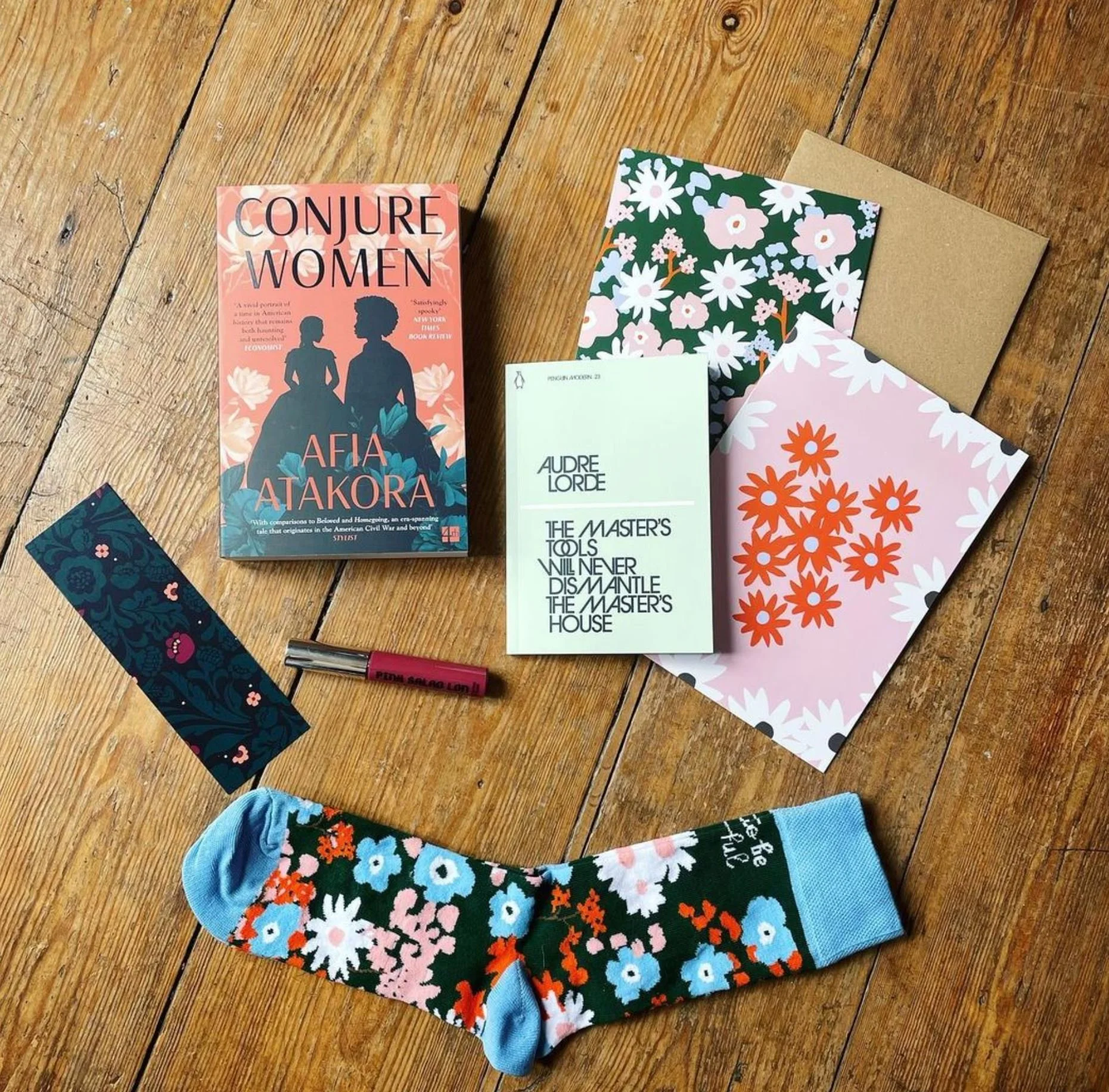 Books That MatterI was invited to design a pair of socks and two postcards for the April subscription box of Books That Matter UK. Photo by @francesdoes